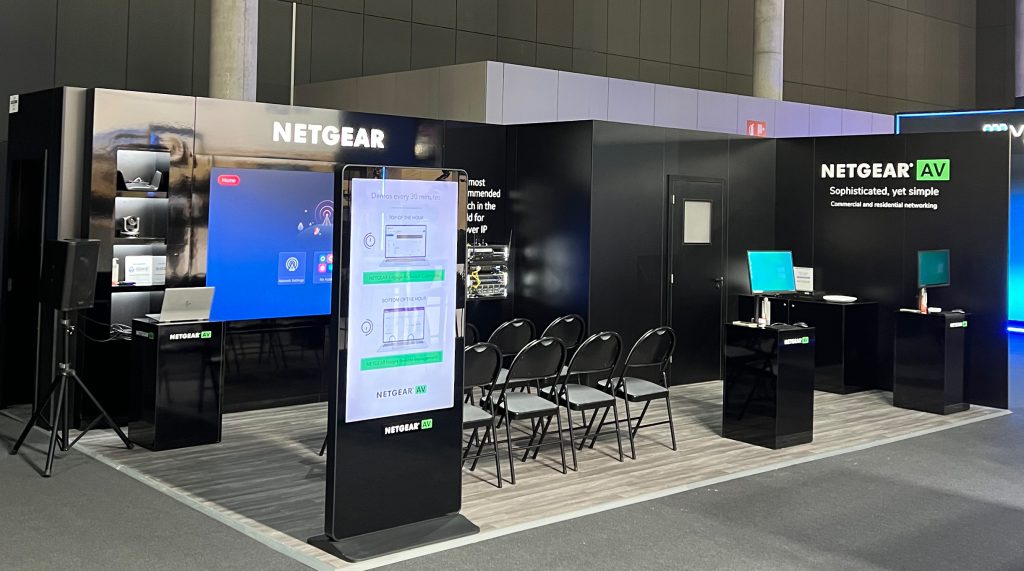 Full-service European exhibition stand build for Netgear at the Integrated Systems Europe (ISE) conference.