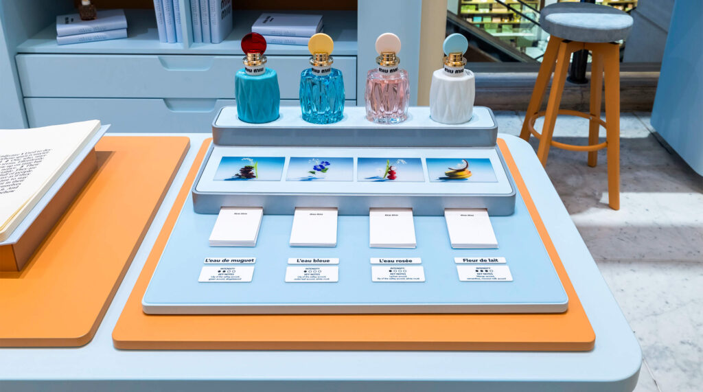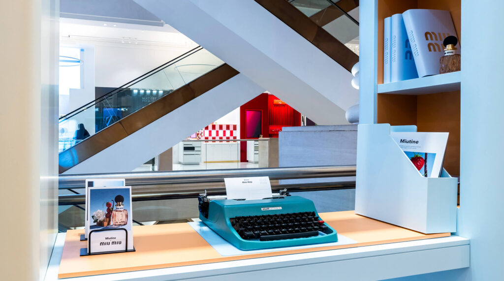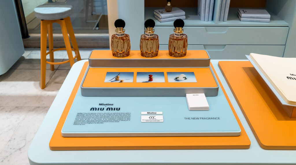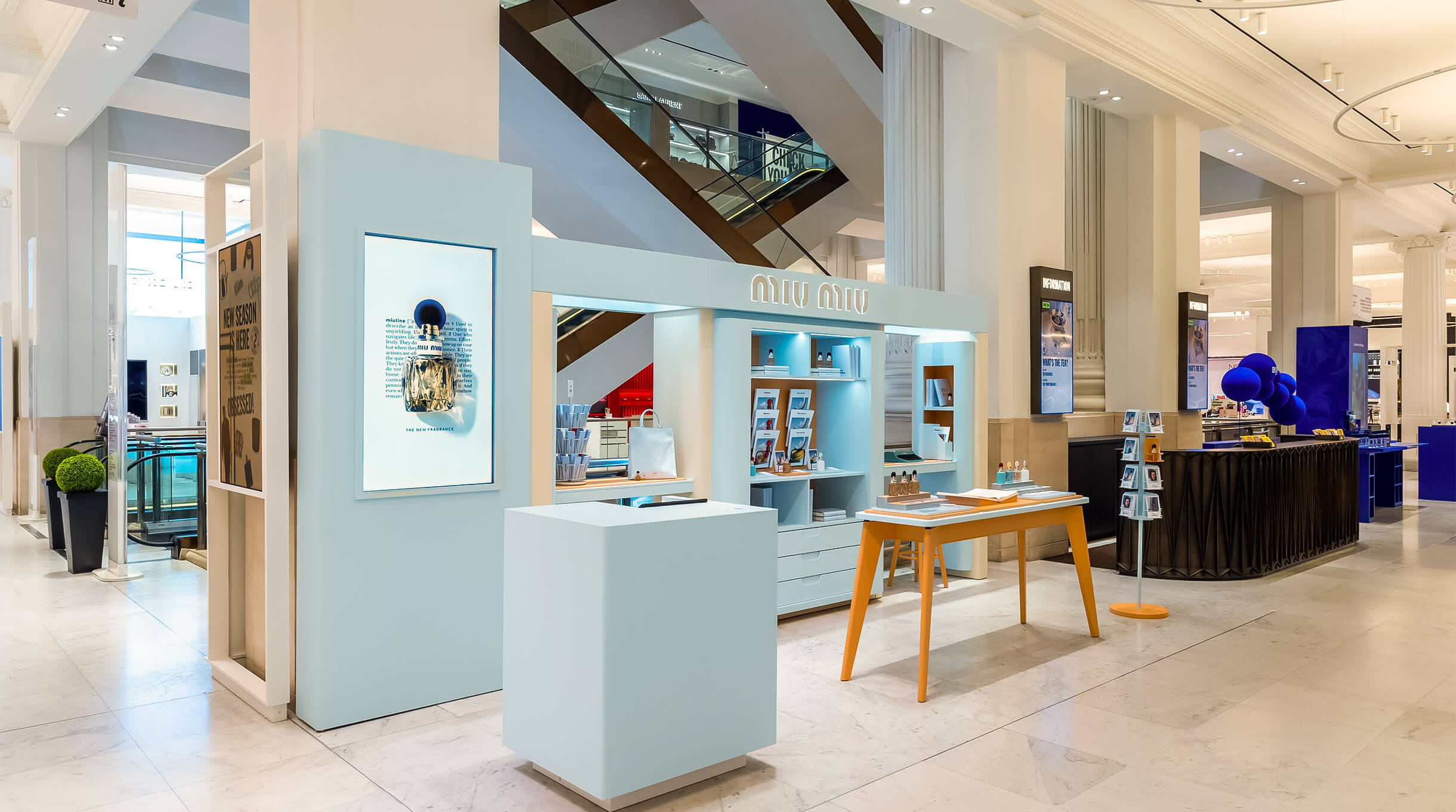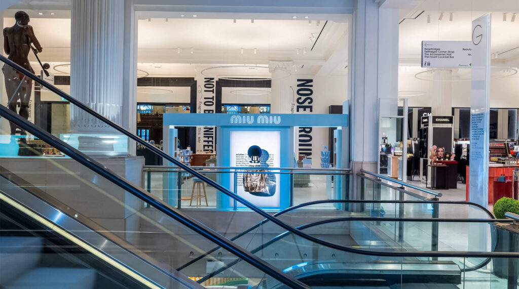 To promote the launch of Miu Miu’s latest fragrance, Miutine. We created a stylish and interactive pop-up installation within Selfridges Oxford Street. The design incorporates high-quality materials, bespoke detailing, and an immersive aesthetic to reflect the brand’s signature style. This Space is designed to provide a striking yet welcoming ambiance, effectively capturing attention and enhancing the overall retail experience.