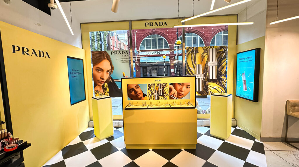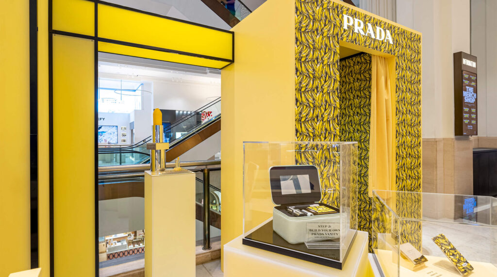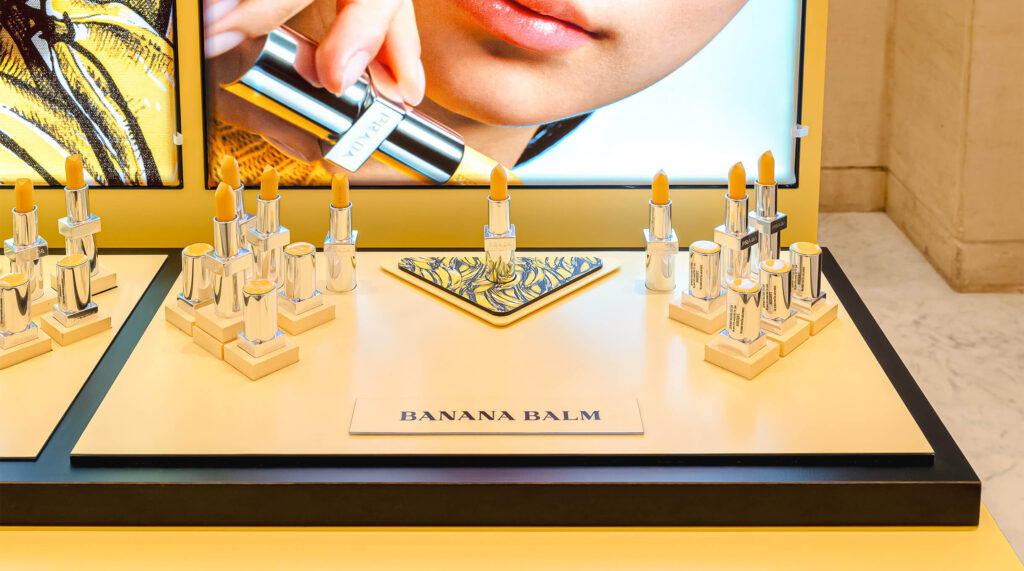 Prada Banana Balm is an exciting multi-store promotional campaign, taking place at Boots, Selfridges, and Harrods. The site is designed to showcase their innovative new lip balm. This campaign presents a refreshing reinterpretation of the classic Prada aesthetic, as it shifts from the brand’s signature green to a livelier and more vibrant yellow. This striking colour choice embodies a sense of fun and energy, perfectly complementing the nourishing experience of the lip balm itself.